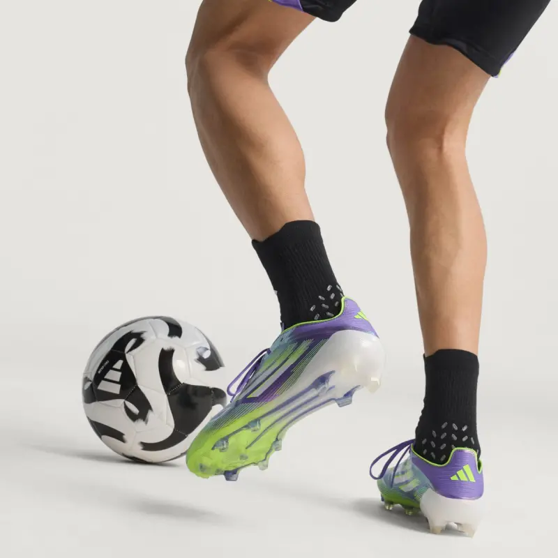 Find your fast to truly express yourself on the field. Feel the rush in adidas F50 cleats engineered for speed. These Elite soccer cleats have a thin Fibertouch upper with a Compression Fit Tunnel Tongue for lockdown and a Sprintweb 3D texture to help keep the ball close when you’re flying. Designed for dry grass pitches, the springy Sprintframe 360 outsole supports relentless pace.
