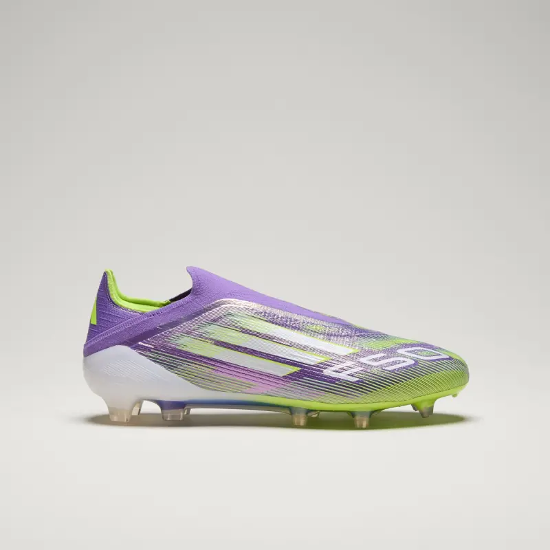 Find your fast to truly express yourself on the field. Feel the rush in adidas F50 cleats engineered for speed. These laceless Elite soccer cleats have a thin Fibertouch upper with an adidas PRIMEKNIT collar for lockdown and a Sprintweb 3D texture to help keep the ball close. Designed for dry grass pitches, the springy Sprintframe 360 outsole supports relentless pace.