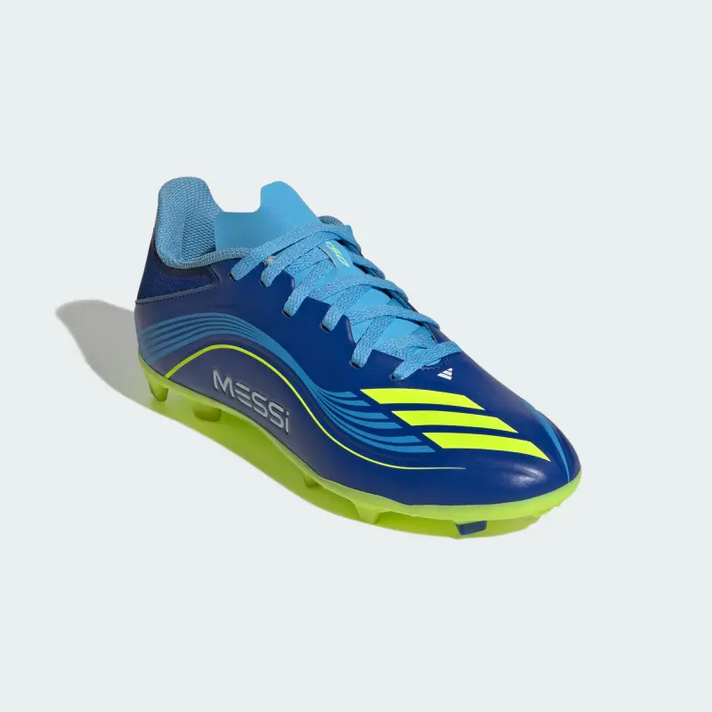Engineered for speed, tuned for Lionel Messi. These juniors’ adidas League soccer cleats are part of a collection created to match the GOAT’s on-pitch requirements. Delivering a leather-like feel, their flexible HybridTouch upper comes with a comfortable synthetic tongue. The versatile outsole is built for quick feet on a variety of surfaces.