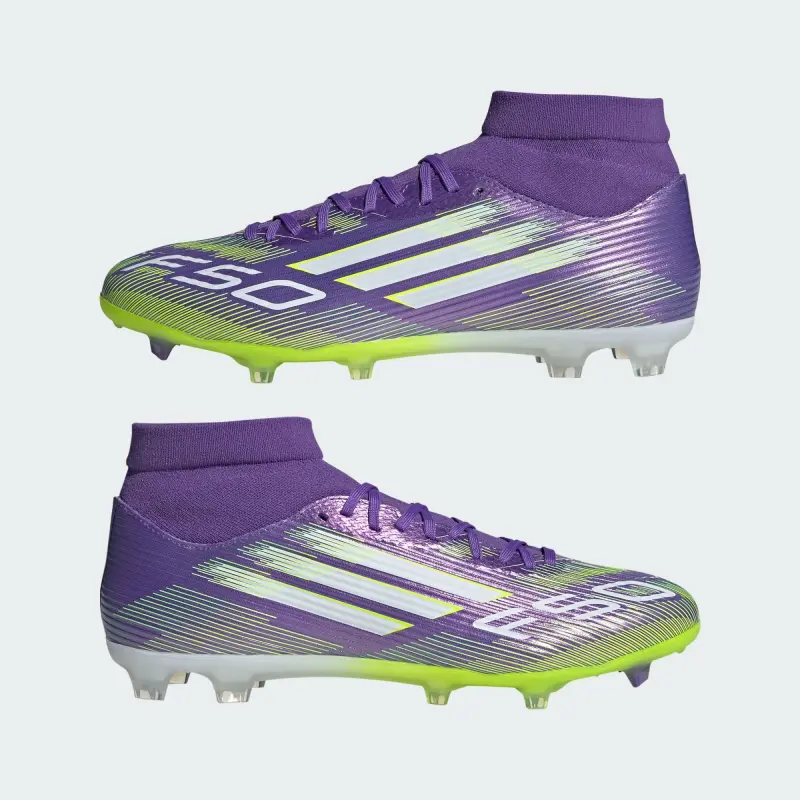 Adidas F50 League Mid-Cut FG/MG Purple Rush Cloud White Lucid Lemon