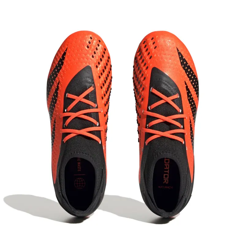 Control + accuracy = confidence. When the goal’s in your sights, target perfection with adidas Predator Accuracy. These juniors’ soccer cleats have a soft HybridTouch upper with High Definition Grip rubber elements in the strike zone. As well as providing solid grip on the ball, they ensure the forefoot stays flexible for comfortable movement. The specialist outsole keeps you in charge on firm ground.