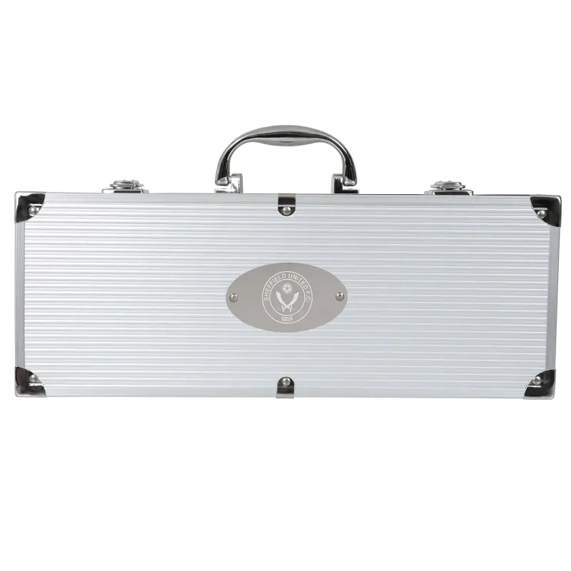 Take your BBQ game to the next level with this official SUFC BBQ Set. Perfect for grilling up a feast, this set comes neatly packed in a sleek carry case with the Sheffield United Crest proudly displayed.
